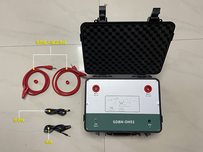 GDBN-OH01電纜測(cè)試多次脈沖耦合器與GDBN-C2000電纜多次脈沖故障測(cè)距儀和高壓信號(hào)發(fā)生器配合使用,用于檢測(cè)各種電力電纜的高阻泄漏故障、閃絡(luò)性故障、低阻接地和斷路故障。GDBN-OH01為GDBN-C2000電纜多次脈沖故障測(cè)距儀提供脈沖信號(hào)耦合通路,同時(shí)實(shí)現(xiàn)了與高壓設(shè)備的電氣隔離。它采用目前國(guó)際上最先進(jìn)的“多次脈沖法”技術(shù),使電纜故障波形的判斷變得簡(jiǎn)單方便。